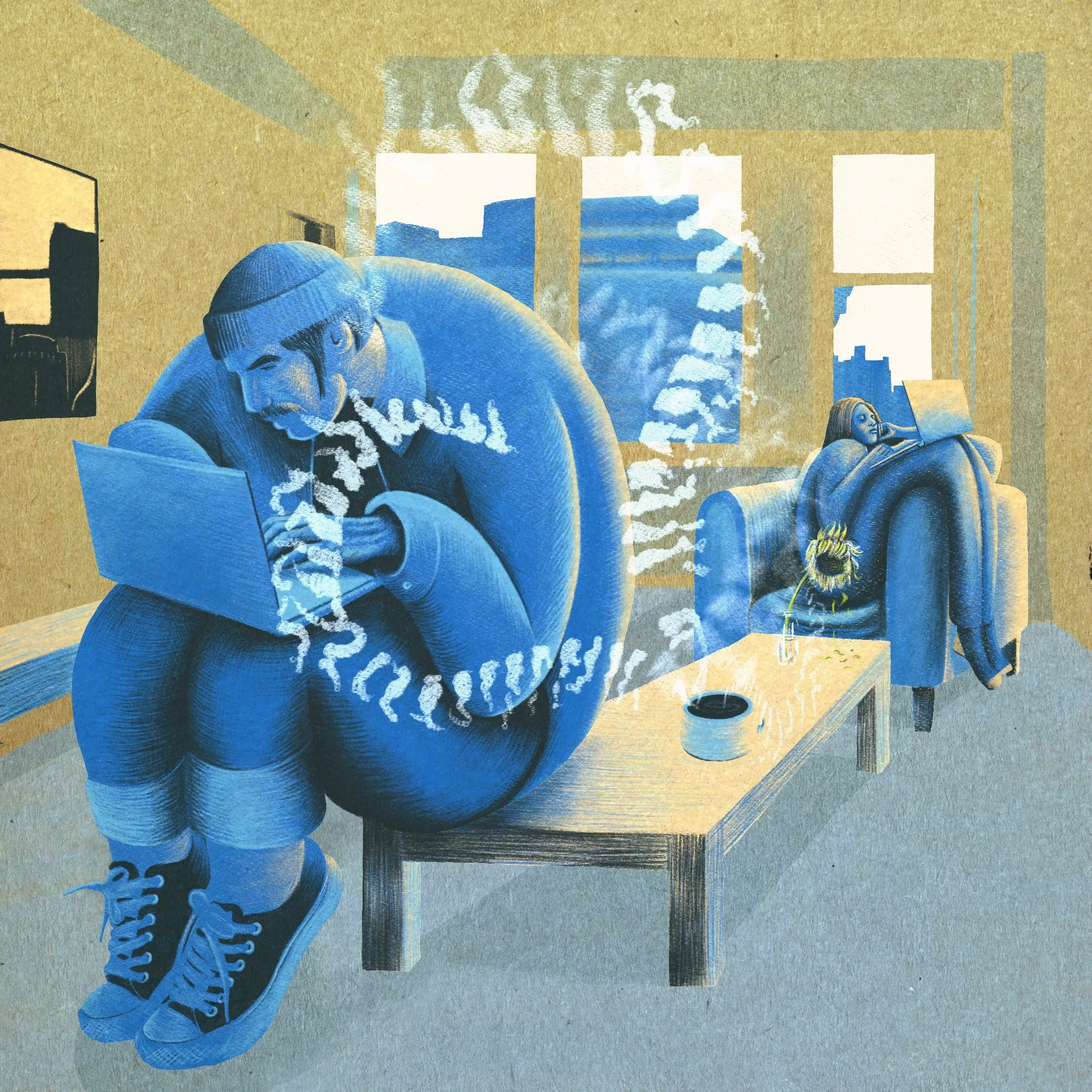 Back Back Speculative illustration for New Yorker article “Stand Up Straight” by Patricia Marx. ‘Is the pandemic breaking our backs?’